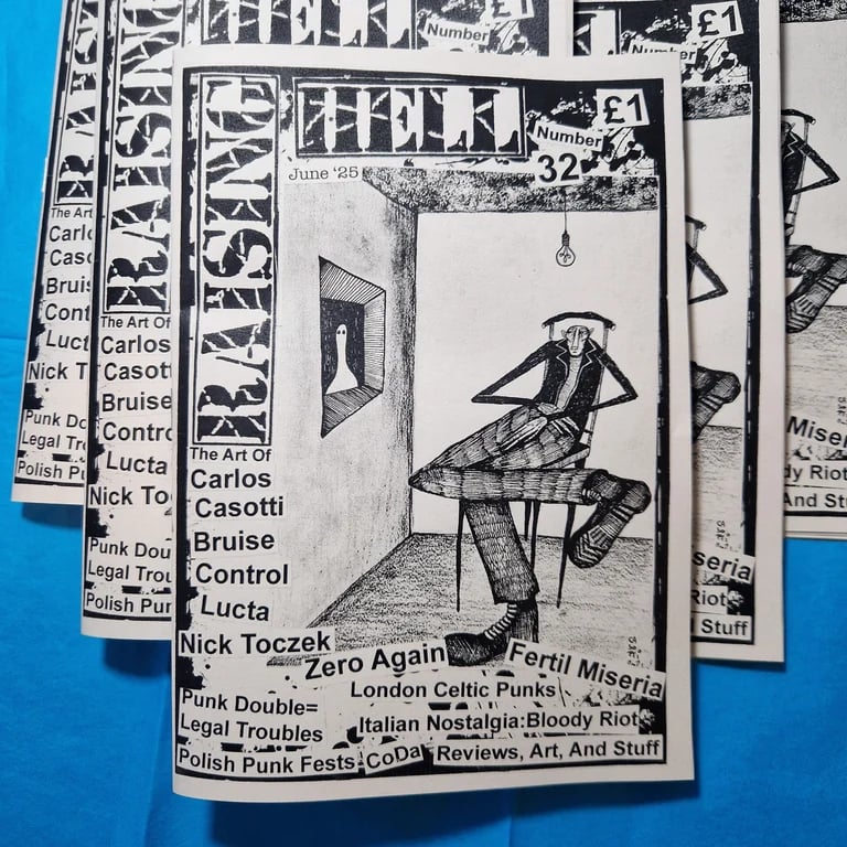 Interviews with BRUISE CONTROL, NICK TOCZEK, ZERO AGAIN, The art of CARLOS CASOTTI and FERTIL MISERIA plus London Celtic Punks, Polish Punk/DIY circuit, COdA Collective (London), Punk Double = Legal Troubles, Italian nostalgia: BLOODY RIOT and reviews. A5, 36 pages