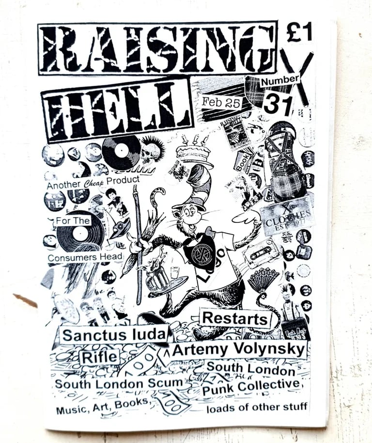 Interviews with RESTARTS, SANCTUS IUDA, RIFLE, ARTEMY VOLYNSKY, South London Scum, South London Punk Collective, plus vinyl/zine/book reviews, Art by Andy C and others, Italian Hardcore Part 2 history and Andy Shocker on the COCKNEY REJECTS/ Rememberance Day and finally a Punk Radio round-up. A5, 36 pages