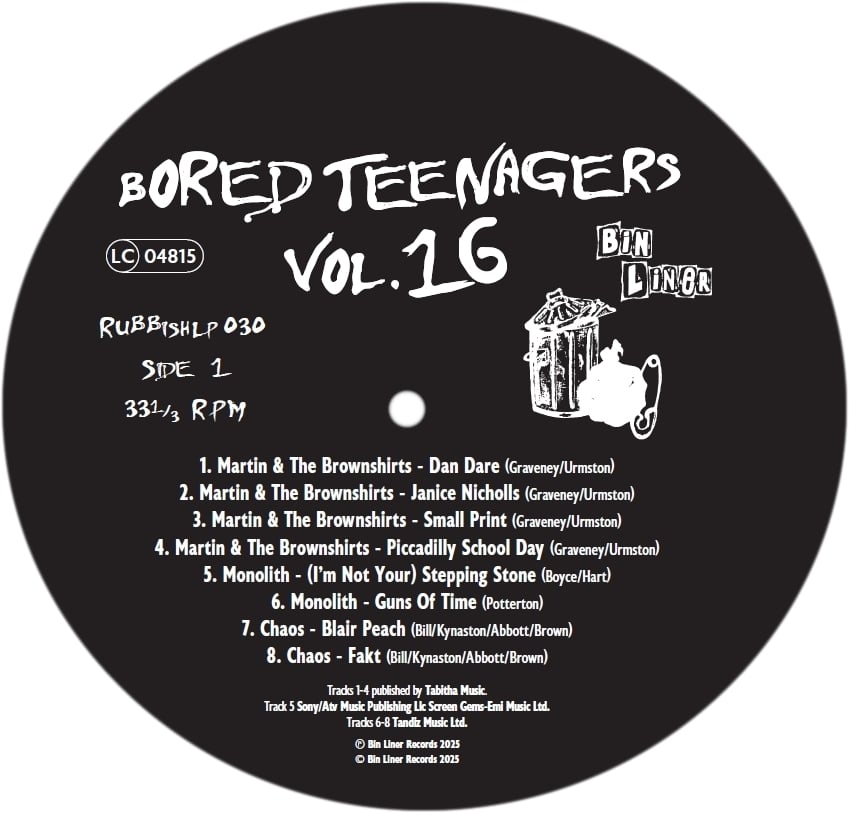 Latest edition of long-running series that chronicles long-lost UK Punk gems circa 1977-80. 16 tracks, 6 bands and a 16 page A5 booklet. This time around we get unreleased tracks plus a rare 7" or two from the likes of MARTIN & THE BROWNSHIRTS (Chester), MONOLITH (E.London), CHAOS (Cheshire), THE ONE TAKES (Scotland), THE MOPEDS (Dorset) and THE LICE (Teeside)