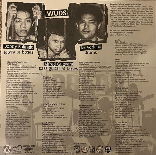 Wuds 1985 debut cassette showed a brash, raw, and uniquely Filipino take on the classic melodic UK brand of punk pioneered by The Clash, Skids, Ruts, etc. And just as those groups matured as their careers went on, Wuds too found their musical palette evolving as time progressed. Their follow up, At Nakalimutan Ang Diyos--translated "And God Was Forgotten"--shows a slightly more sophisticated take on their original sound, while still exploding with that classic Pinoy punk energy. The recordings on this release stand as a testament to the high level of song crafting and diverse punk spirit the group exhibited at the time.